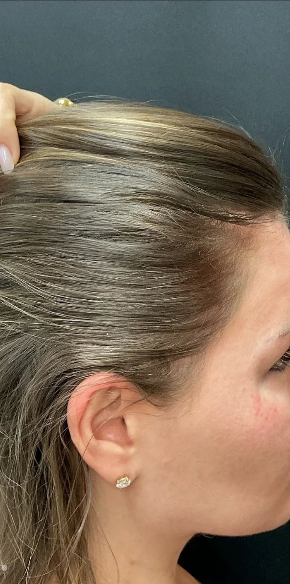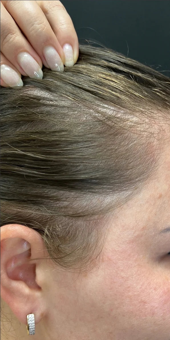 Tiny baby hairs begin to sprout along your hairline — a reassuring sign that your follicles are reawakening and responding to balanced DHT levels and deep nourishment.